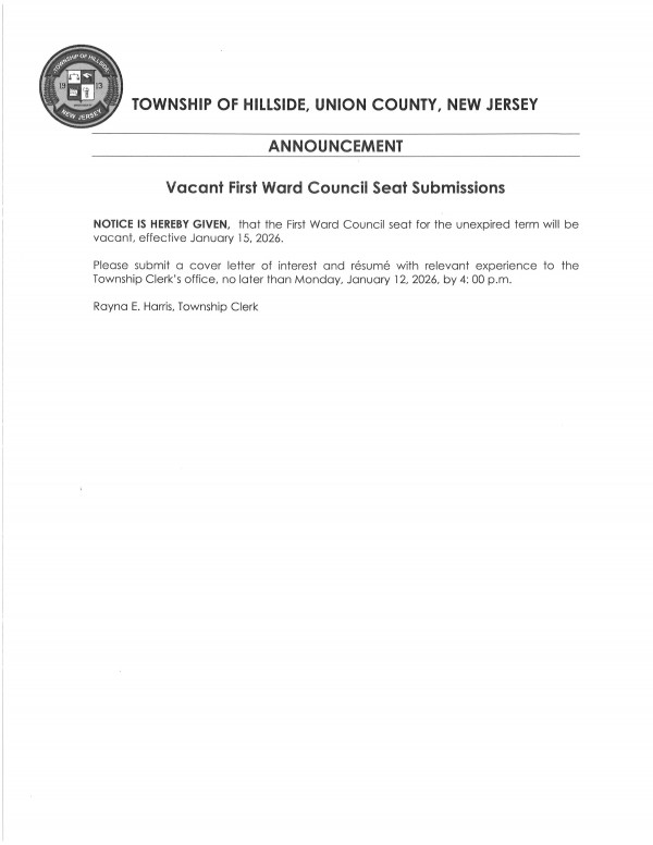 Published: Jan 7, 2026 Share: Last modified: Jan 8, 2026 Location: Hillside, NJ 07205 Target Area: County Effective January 15, 2026