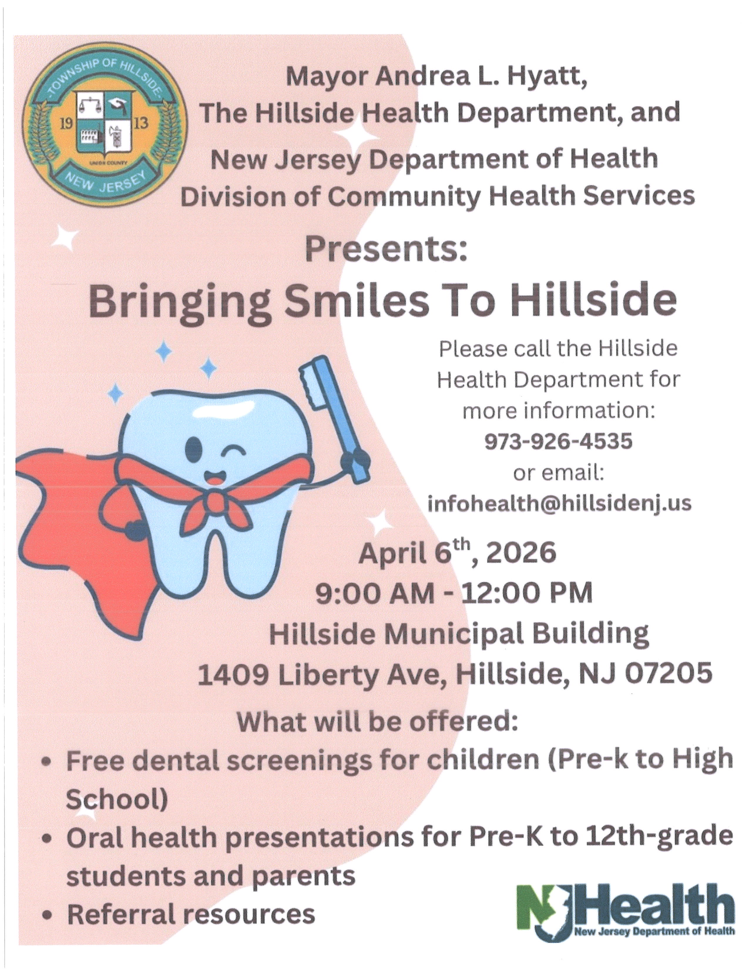 For more information, please call the Hillside Health Department at 973-926-4535 or email infohealth@hillsidenj.us
